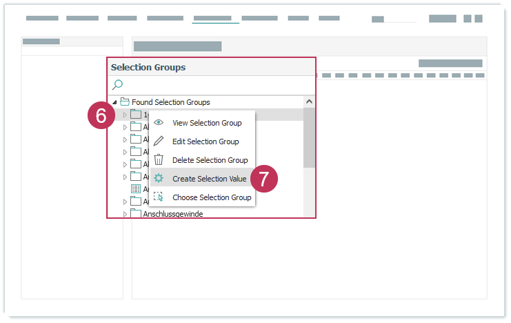 String-Auswahlwert erstellen, Handlungsschritte 2-5- Klicken Sie mit der rechten Maustaste auf eine Auswahlgruppe.