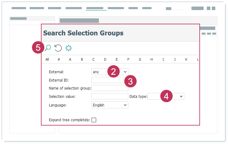 - Wählen Sie aus, ob externe Auswahlgruppen beim Suchen berücksichtigt werden.