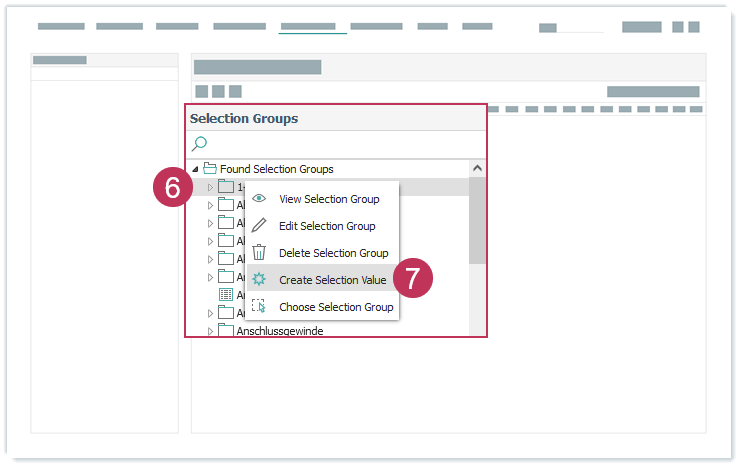String-Auswahlwert für mehrstufige Auswahlgruppe erstellen, Handlungsschritte 2-5- Klicken Sie mit der rechten Maustaste auf einen Auswahlwert.