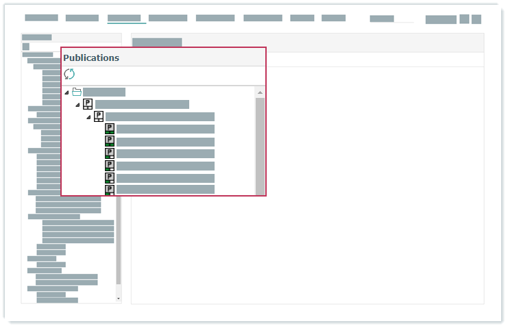 Ergebnis: Die festgelegte Anzahl der Hierarchiestufen im Publikationsbaum werden beim Öffnen von viaPUBLISH → Publikationen automatisch aufgeklappt.