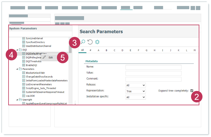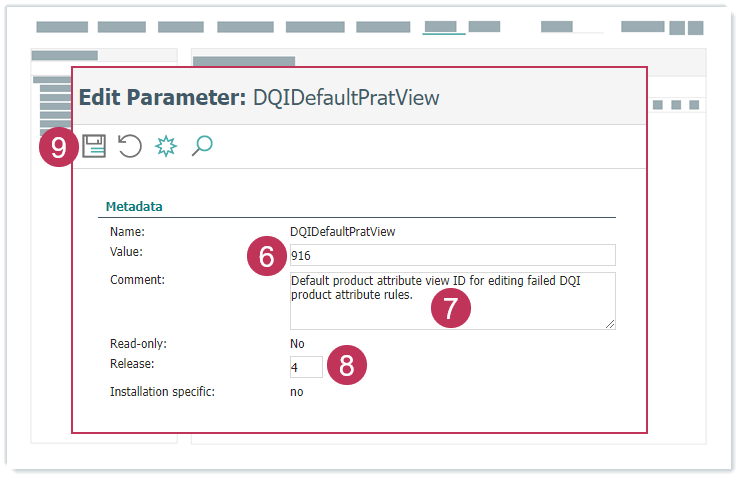 Systemparameter DQIDefaultPratView bearbeiten, Handlungsschritte 6-9