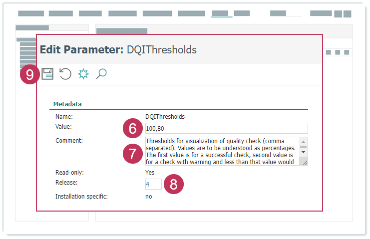 Systemparameter DQIThresholds bearbeiten, Handlungsschritte 6-9
