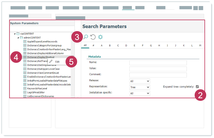 Systemparameter DictionaryDisplayShortcut bearbeiten, Handlungsschritte 2-5- Geben Sie