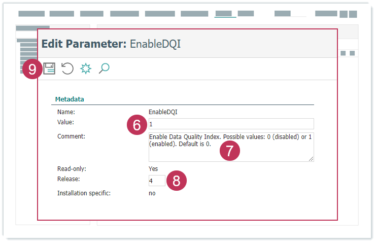 Systemparameter EnableDQI bearbeiten, Handlungsschritte 6-9