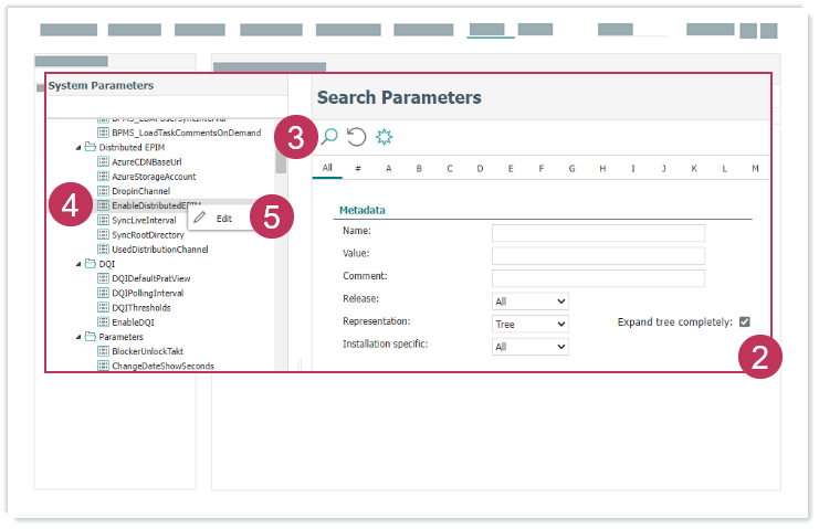 Systemparameter EnableDistributedEPIM bearbeiten, Handlungsschritte 2-5- Geben Sie