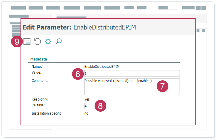 Systemparameter EnableDistributedEPIM bearbeiten, Handlungsschritte 6-9