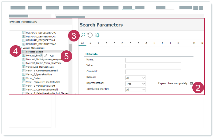 Systemparameter Forecast_Enable bearbeiten, Handlungsschritte 2-5- Geben Sie
