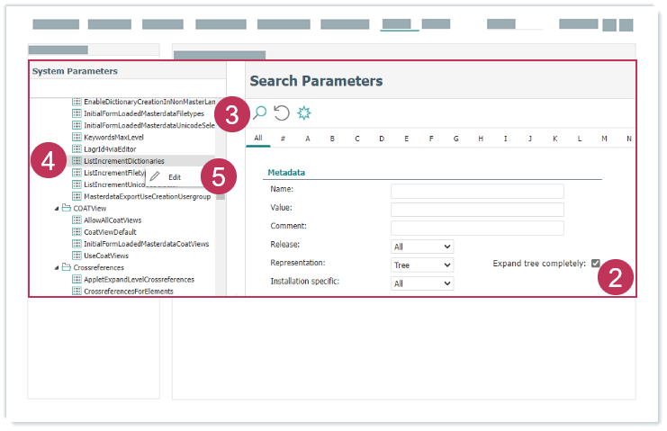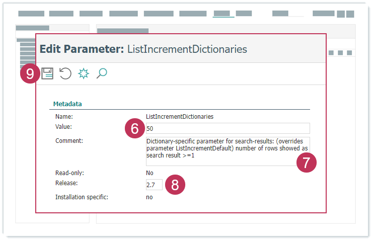 Systemparameter ListIncrementDictionaries bearbeiten, Handlungsschritte 6-9