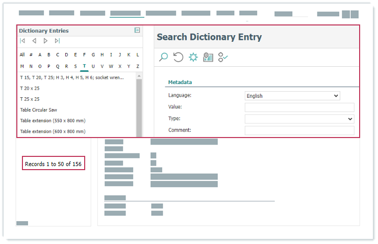 Ergebnis: Beim Suchen nach Wörterbucheinträgen wird die festgelegte Anzahl der Suchergebnisse pro Seite angezeigt.