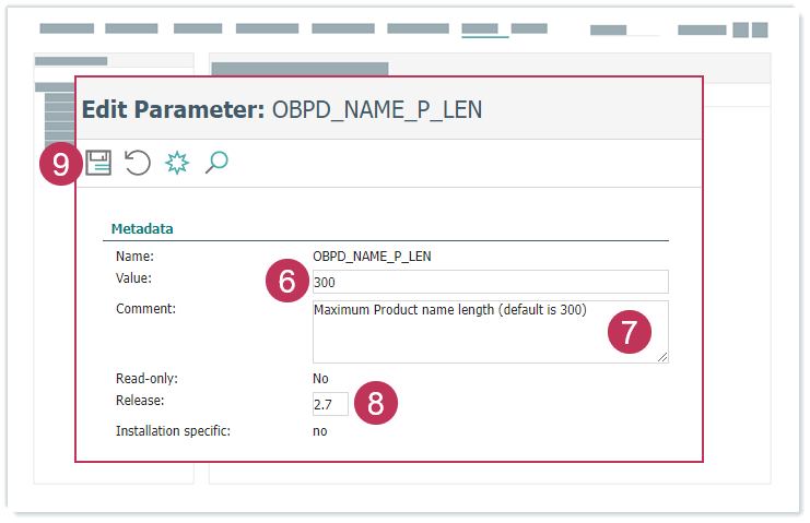 Systemparameter OBPD_NAME_P_LEN bearbeiten, Handlungsschritte 6-9