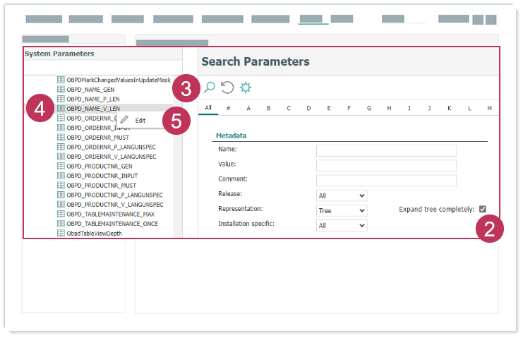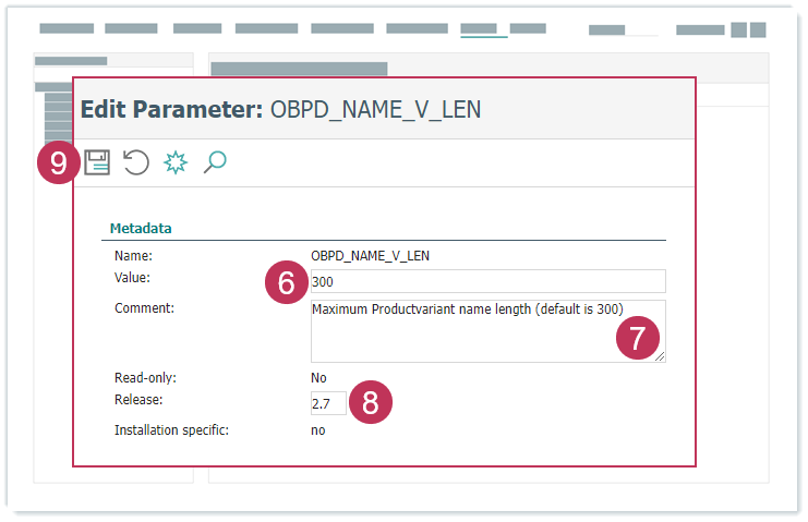 Systemparameter OBPD_NAME_V_LEN bearbeiten, Handlungsschritte 2-5- Geben Sie eine Zahl ein, um die Länge der Namen von Produktvarianten festzulegen.