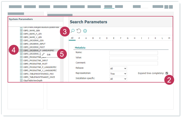 Systemparameter OBPD_ORDENR_P_LANGUNSPEC bearbeiten, Handlungsschritte 2-5- Geben Sie