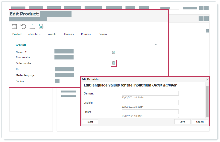 Ergebnis: Sprachwerte für Bestellnummern von Produkten können bearbeitet werden.
