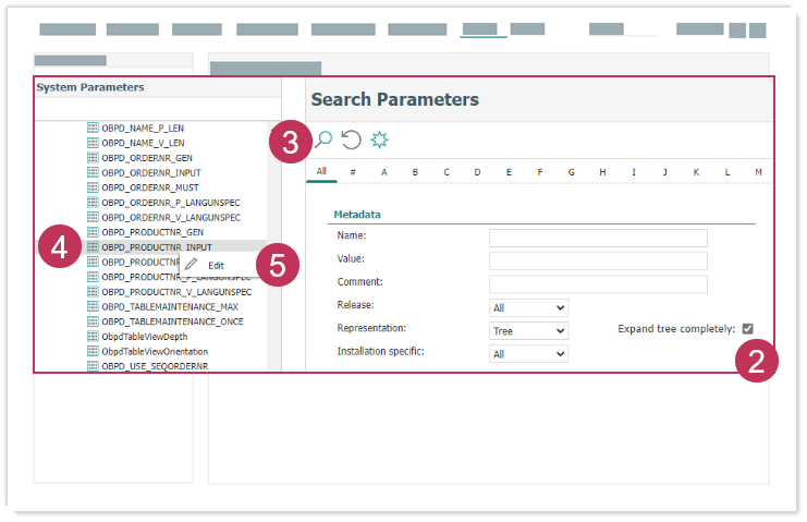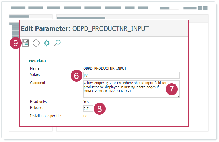 Systemparameter OBPD_PRODUCTNR_INPUT bearbeiten, Handlungsschritte 6-9