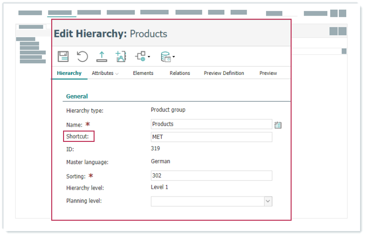 Darstellung von Kürzeln beim Bearbeiten von Hierarchien