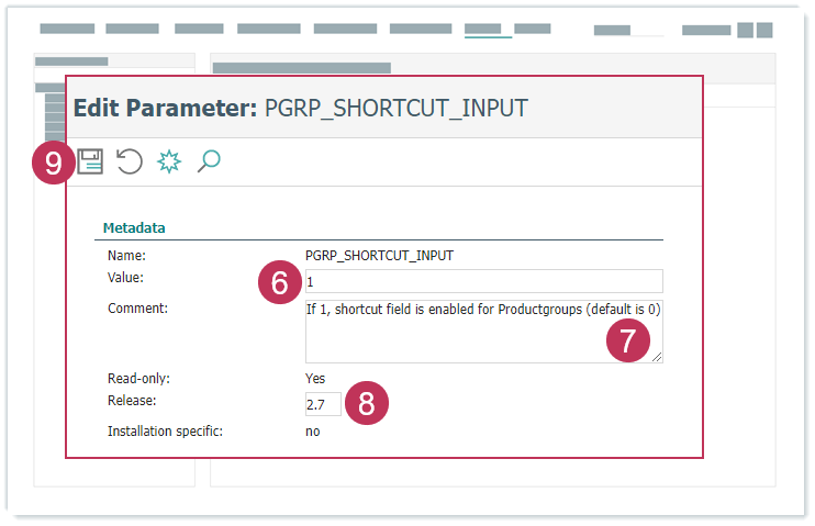 Systemparamter PGRP_SHORTCUT_INPUT bearbeiten, Handlungsschritte 6-9