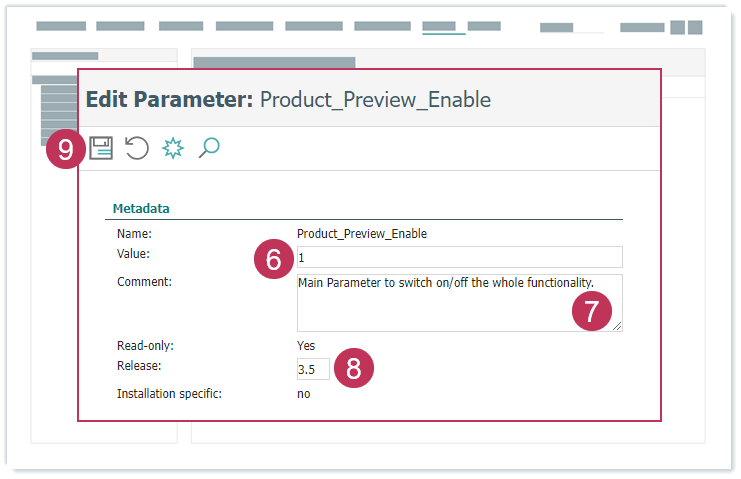 Systemparameter Product_Preview_Enable bearbeiten, Handlungsschritte 6-9