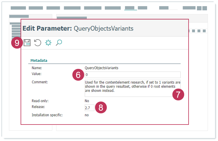 Systemparameter QueryObjectsVariants bearbeiten, Handlungsschritte 6-9
