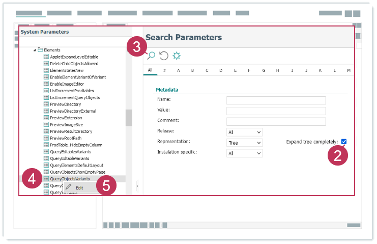 Systemparameter QueryObjectsVariants bearbeiten, Handlungsschritte 2-5- Geben Sie