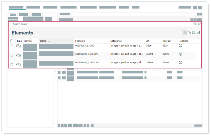 Ergebnis: Bei der Suche nach Elementen werden Wurzelelemente angezeigt.