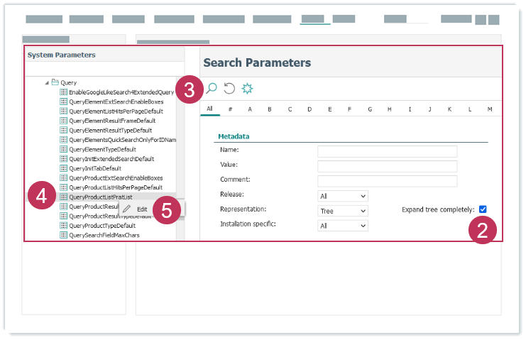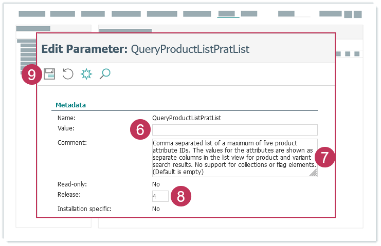 Systemparameter QueryProductListPratList bearbeiten, Handlungsschritte 6-9