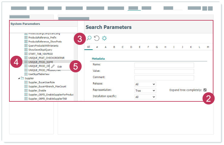 Systemparameter UNIQUE_PROD_NAME bearbeiten, Handlungsschritte 2-5Geben Sie