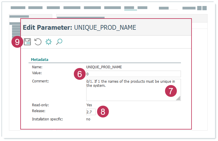 Systemparameter UNIQUE_PROD_NAME bearbeiten, Handlungsschritte 6-9