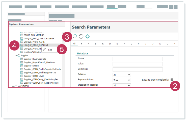 Systemparameter UNIQUE_PROD_ORDERNR bearbeiten, Handlungsschritte 2-5- Geben Sie