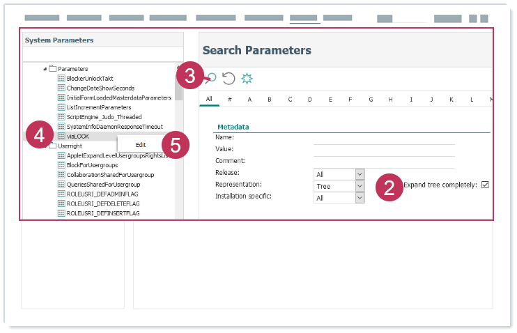 Systemparameter viaLOOK bearbeiten, Handlungsschritte 6-9