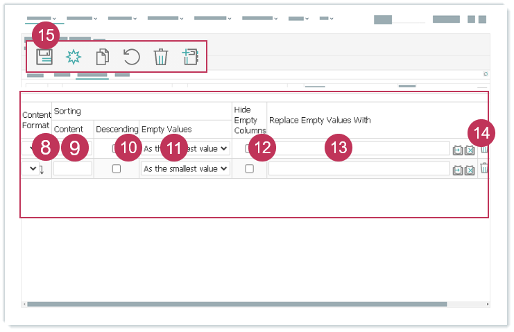 Wenn Sie keine Zahlen für die Sortierung eingeben, werden die Spalteninhalte wie in der Produktplanung sortiert.