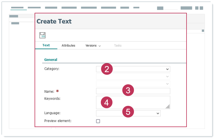 - Öffnen Sie viaCONTENT → Neu → Text.