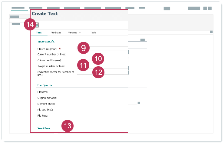 Textelement erstellen und zuordnen, Handlungsschritte 4-8- Wählen Sie eine Strukturgruppe aus.