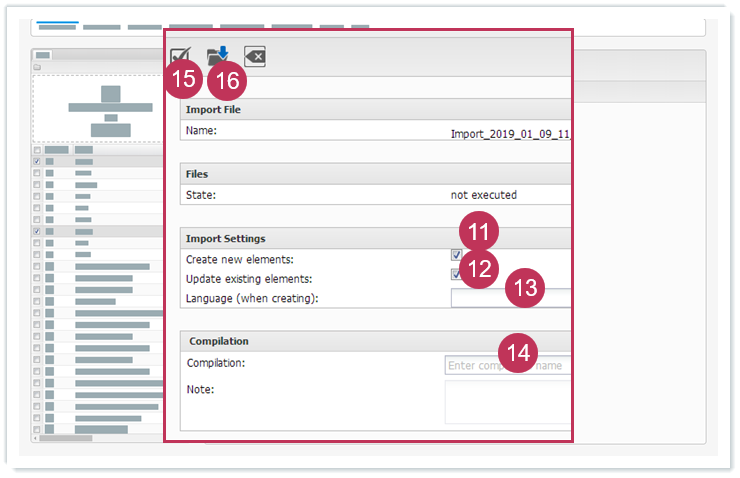 Übersetzte Dateien importieren, Handlungsschritte 11-16