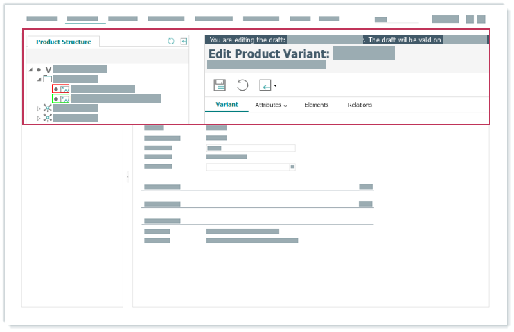 Versionsentwürfe können auf Hierarchie-, Produkt- und Produktvarianten-Ebene bearbeitet werden. Die nachfolgende Aufgabe zeigt, wie Sie einen Versionsentwurf für ein Produkt bearbeiten.