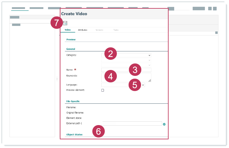 Videoelement erstellen, Handlungsschritte 2-7- Klicken Sie auf Upload.