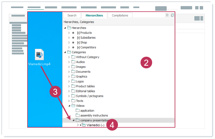 - Ziehen Sie die Dateien per Drag-and-drop auf die Elementkategorie.