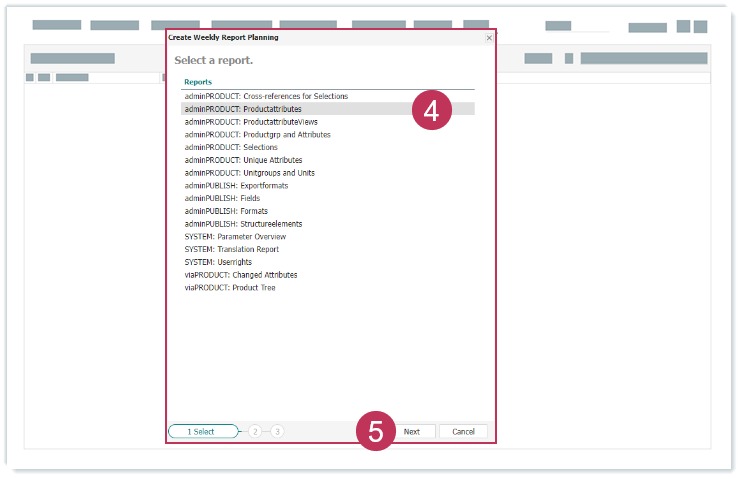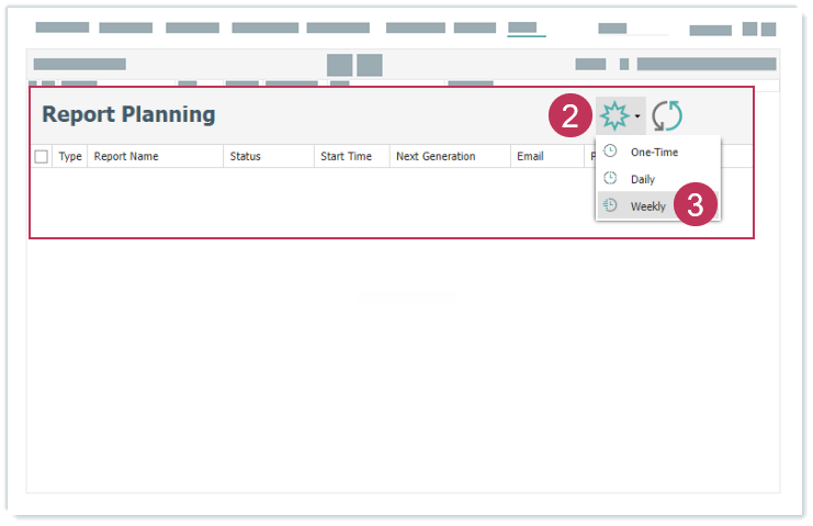 Wöchentliche Reportplanung erstellen, Handlungsschritte 2-3- Wählen Sie einen Report aus.