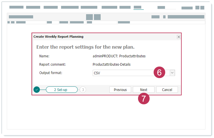 Wöchentliche Reportplanung erstellen, Handlungsschritte 4-5- Wählen Sie ein Ausgabeformat aus.