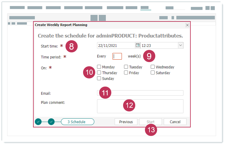 Wöchentliche Reportplanung erstellen, Handlungsschritte 8-13