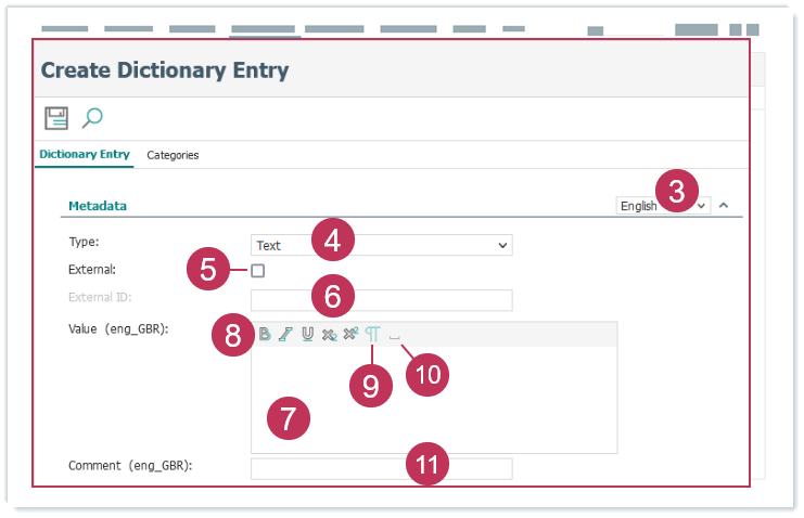 - Öffnen Sie adminCONTENT → Wörterbuch → Einträge.
