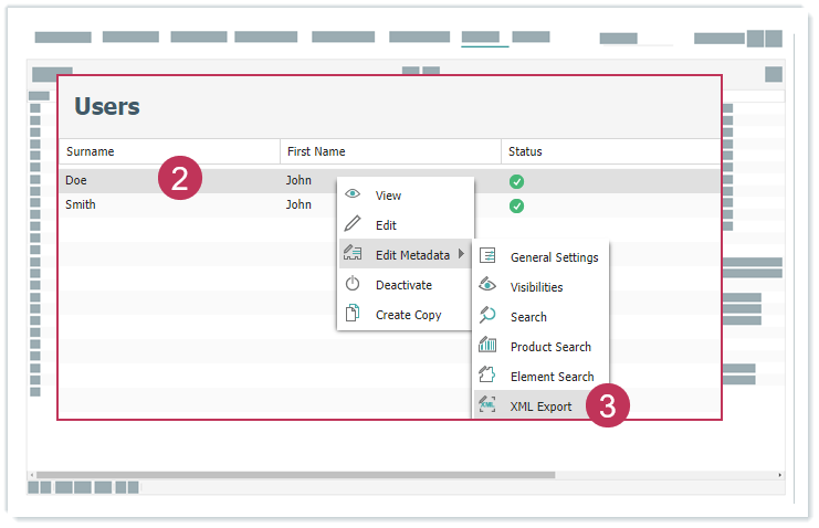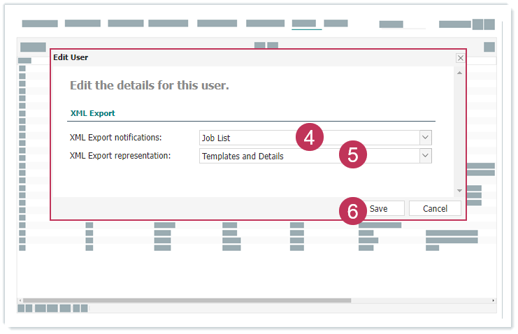 XML-Exporteinstellungen eines Benutzers bearbeiten, Handlungsschritte 4-6
