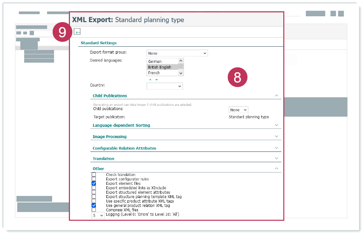 XML-Exportvorlage erstellen, Handlungsschritte 8-9