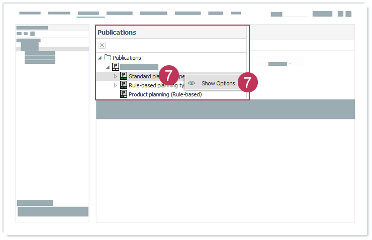 Klicken Sie mit der rechten Maustaste auf eine Publikation und wählen Sie Optionen anzeigen aus.