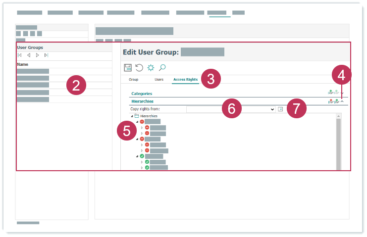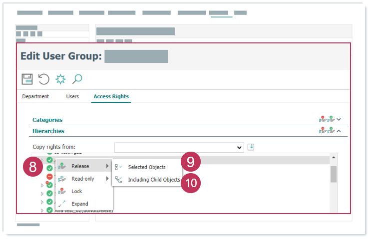 Zugriffsrechte für Hierarchien bearbeiten, Handlungsschritte 2-7- Klicken Sie mit der rechten Maustaste auf ausgewählte Hierarchien.