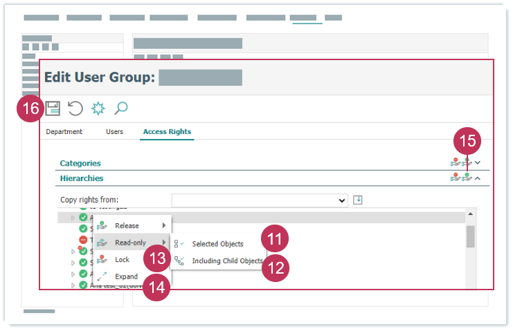 Zugriffsrechte für Hierarchien bearbeiten, Handlungsschritte 11-16